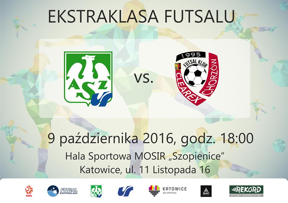 Już w najbliższą niedzielę, 9 października 2016 r., o godz. 18 w hali MOSiR w Katowicach – Szopienicach drużyna AZS UŚ Katowice rozegra swoje pierwsze spotkanie w tym sezonie na własnym parkiecie. Podopieczni Pawła Machury podejmować będą chorzowski Clearex, czyli najbardziej utytułowany zespół występujący w Futsal Ekstraklasie. Derby z rywalem zza miedzy zawsze były bardzo emocjonujące i tak będzie z pewnością także tym razem.