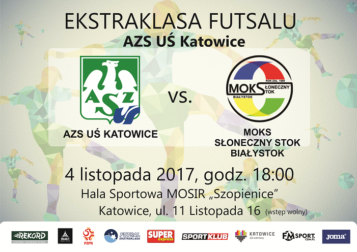 W najbliższą sobotę futsaliści AZS UŚ Katowice podejmą na własnym parkiecie drużynę MOKS Słoneczny Stok Białystok, czyli tegorocznym beniaminkiem rozgrywek. Po ostatnich meczach, oba zespoły mogą mieć odmienne humory. Katowiczanie w derbowym pojedynku pokonali AZS UG Gdańsk 4:2, a białostoczanie ulegli u siebie 1:3 z Pogonią 04 Szczecin. Drużyna, która zgarnie komplet punktów w tym spotkaniu ma szanse awansować na szósta lokatę w tabeli, zatem po raz kolejny widzowie mogą być świadkami niesamowicie emocjonującego i zaciętego pojedynku. Czy akademicy z Katowic pójdą za ciosem i wygrają drugi mecz z rzędu? A może to przyjezdni pokażą charakter i zainkasują 3 punkty? Tego dowiemy się już w sobotę, 4. listopada. Początek meczu o godzinie 18.